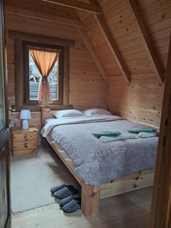We offer charming mountain cottages, and this one features a comfortable double bed, perfect for couples or solo travelers who love a bit of extra space.