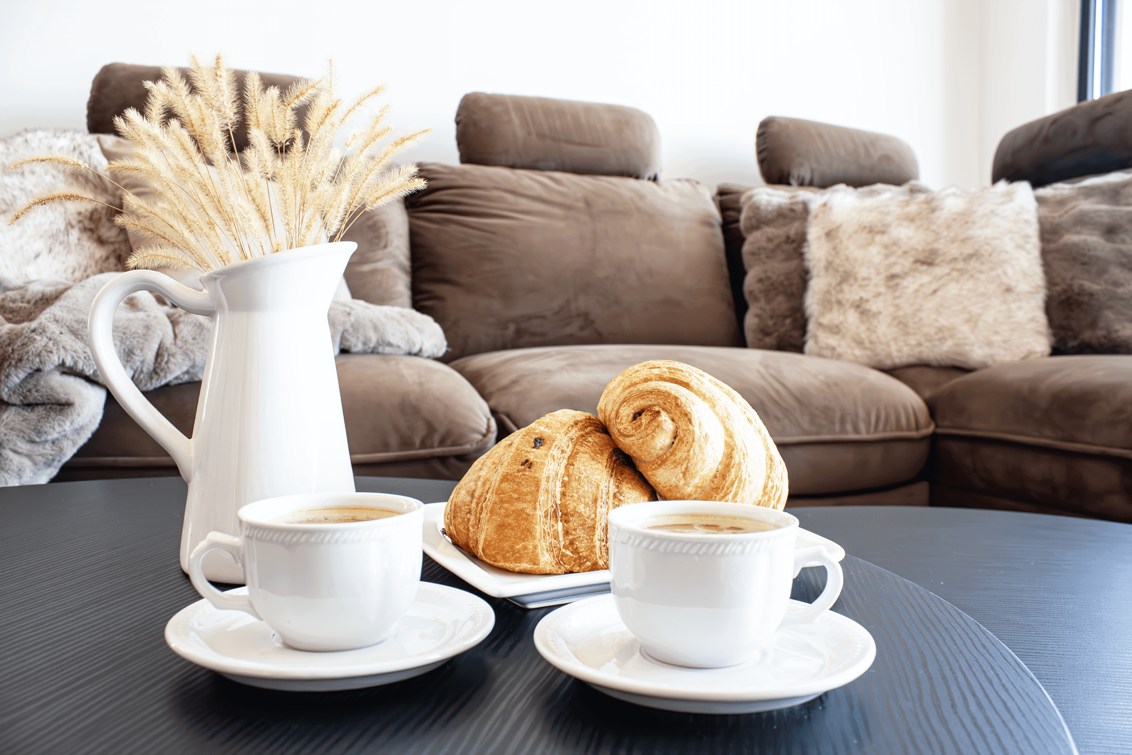 Modern Kitchen: Fully equipped with an island for cooking and dining. Includes induction hob, oven, fridge/freezer, coffee machine, and complete cookware.