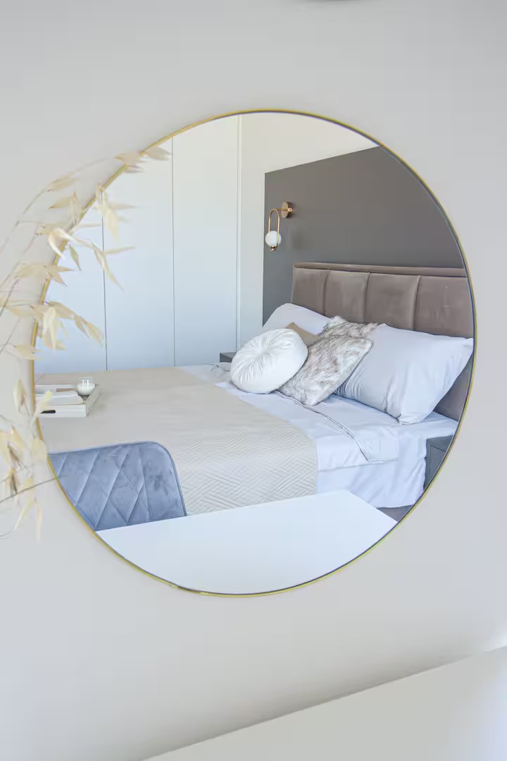 Master Bedroom: Bright and spacious with a queen bed (160x200), large wardrobe, and a versatile workspace/beauty table. Direct access to the balcony and spectacular views.